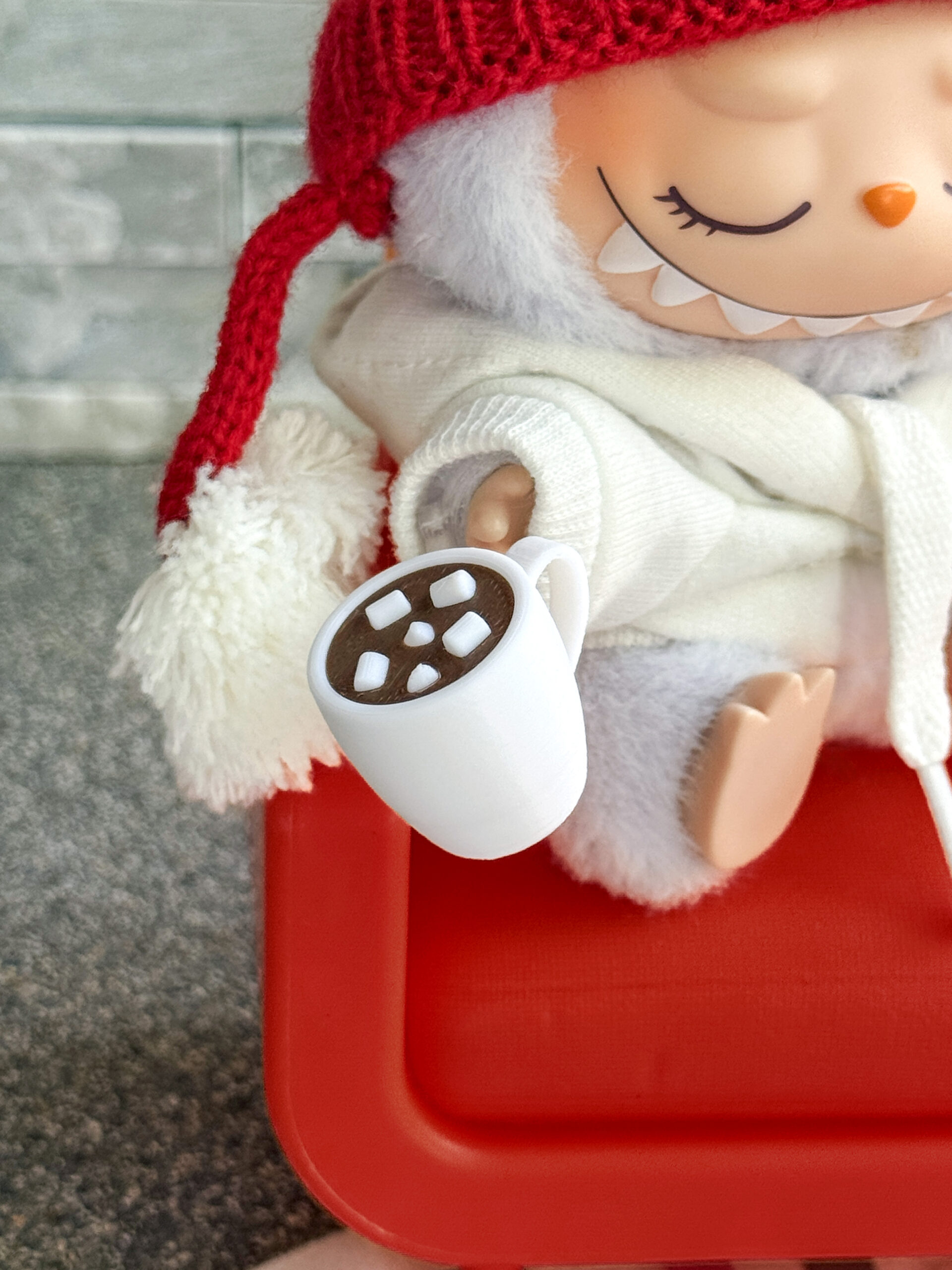 Cozy vibes in tiny form! This little mug of hot chocolate is the perfect winter accessory for your Labubu — complete with sweet holiday charm and plenty of snug, festive feels.