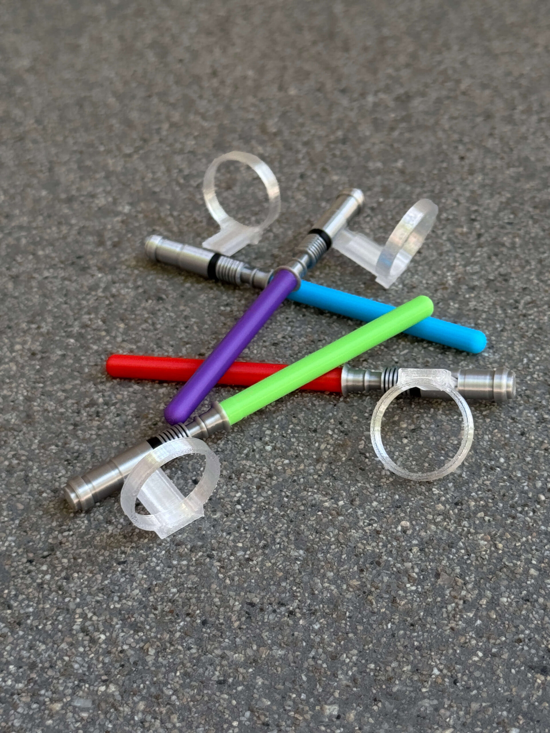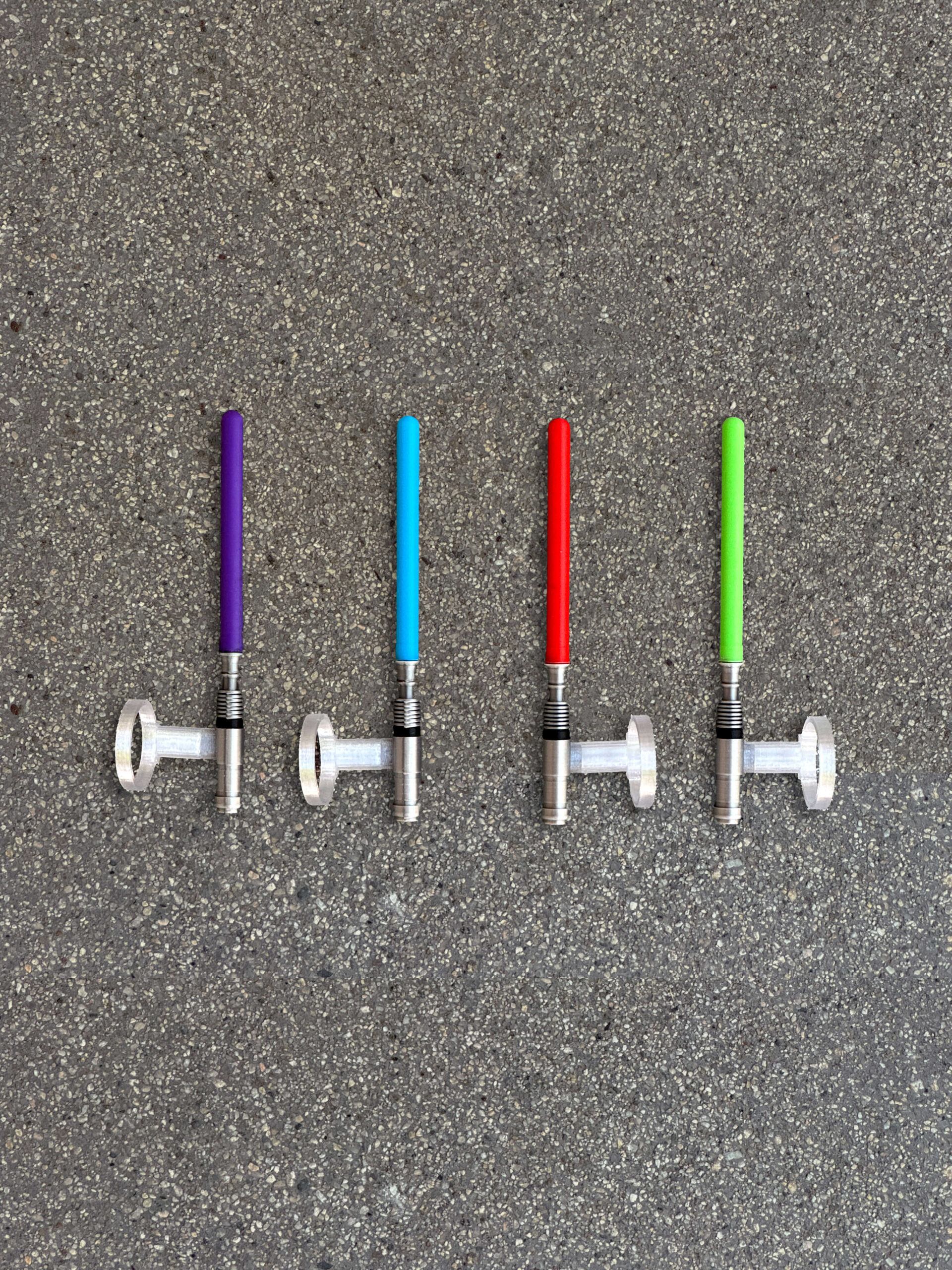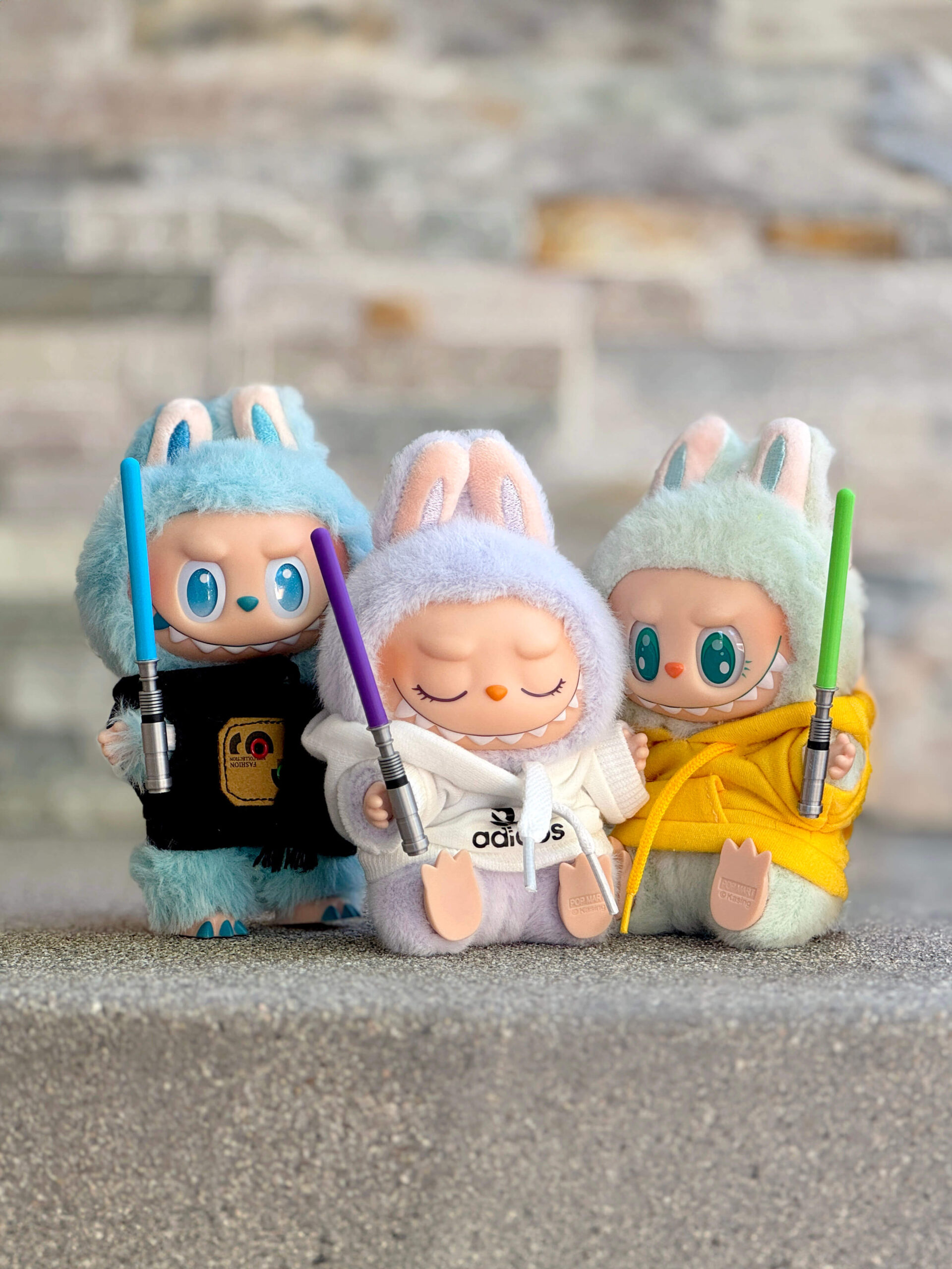 The Force is strong with this one ⚔️ Your Labubu can fight epic galactic battles (or at least cosplay) with these mini 3D printed lightsabers! Let your little Jedi monster rep their fandom with you! Available in four classic colors (green, red, blue, and purple), each saber comes with a clear arm ring that flips so it can be worn on either side. May the Force be with you!